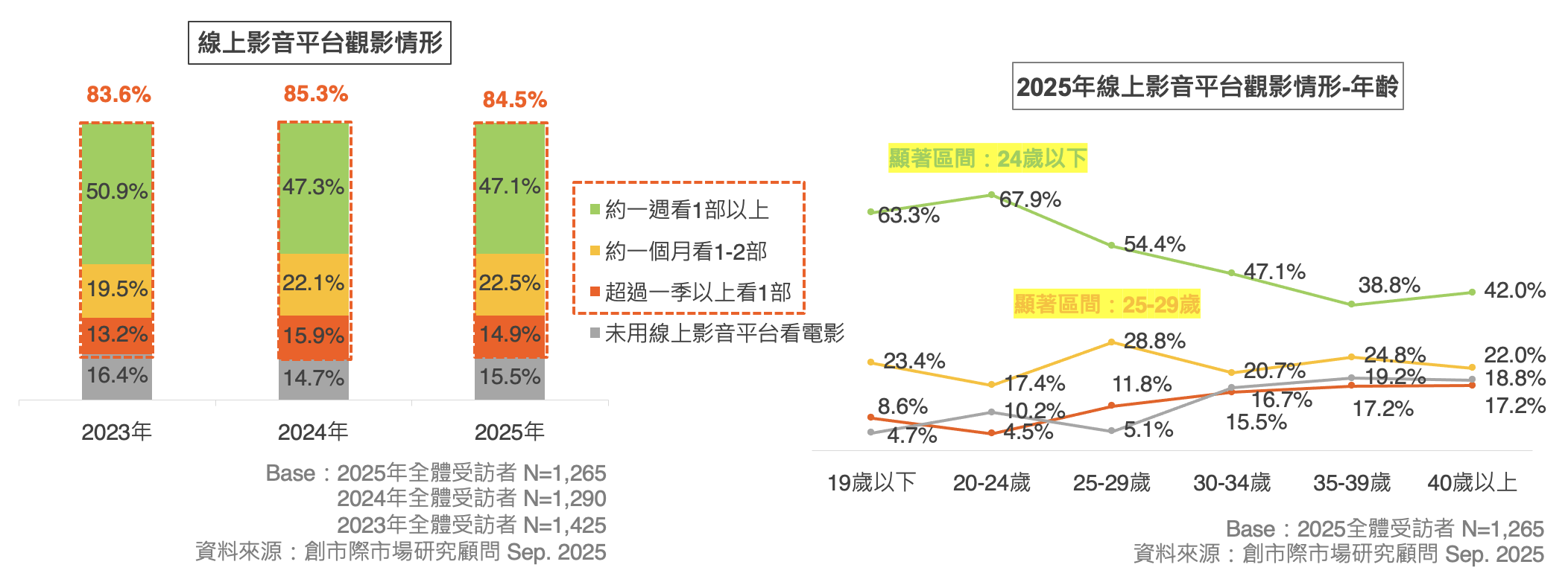 *2025 年使用線上影音平台觀看電影比例:84.5%