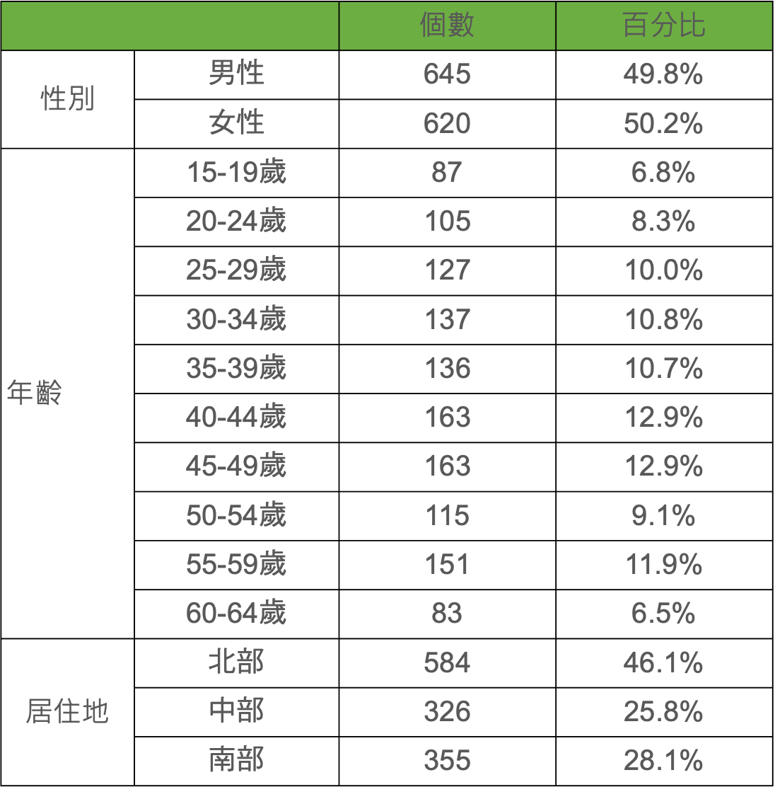 樣本來源為創市際 iX:Panel 大型樣本群,針對 15-64歲網友進行隨機抽樣。