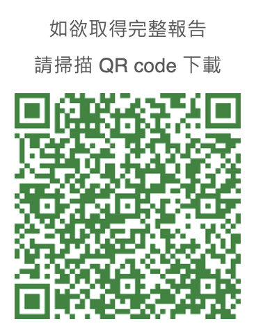 完整報告可由每個章節首頁的 QR code 登入報告首頁取得。