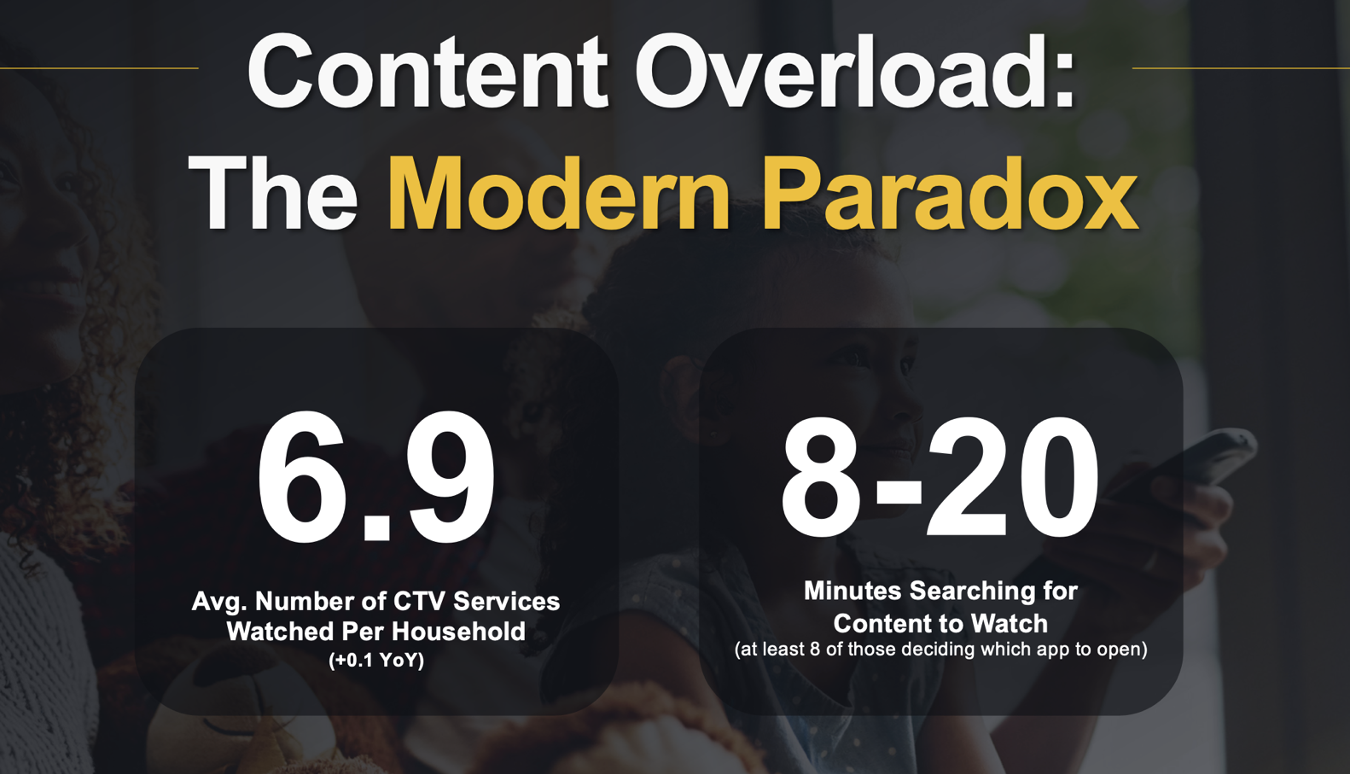 或許你曾經在社群上看過 Yes / But 這種有趣的迷因,Modern Paradox,又稱現代悖論,指的是看似蘊含深層意義但實際上卻是處處矛盾的現象。而 Comscore 在美國 CTV 市場上便觀察到這個現象,全美家戶平均使用 6.9 個 CTV 平台,但實際上最少都要花上 8-20 分鐘來決定要看哪個影片。因此,數大便是美嗎?有時候可不一定是這麼一回事。