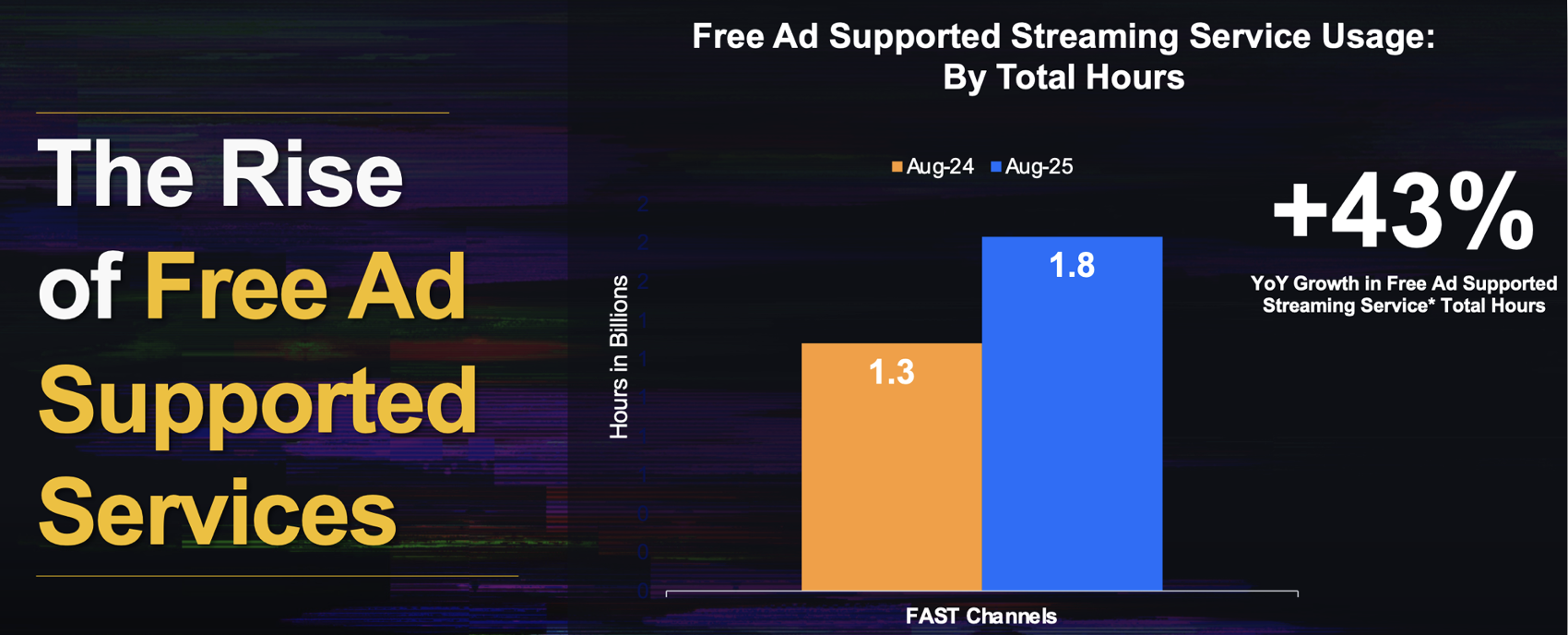 。透過 FAST (Free-Ad Supported TV) 觀賞影音的年增率達 43%,消費者希望有更高 CP 值的選項
