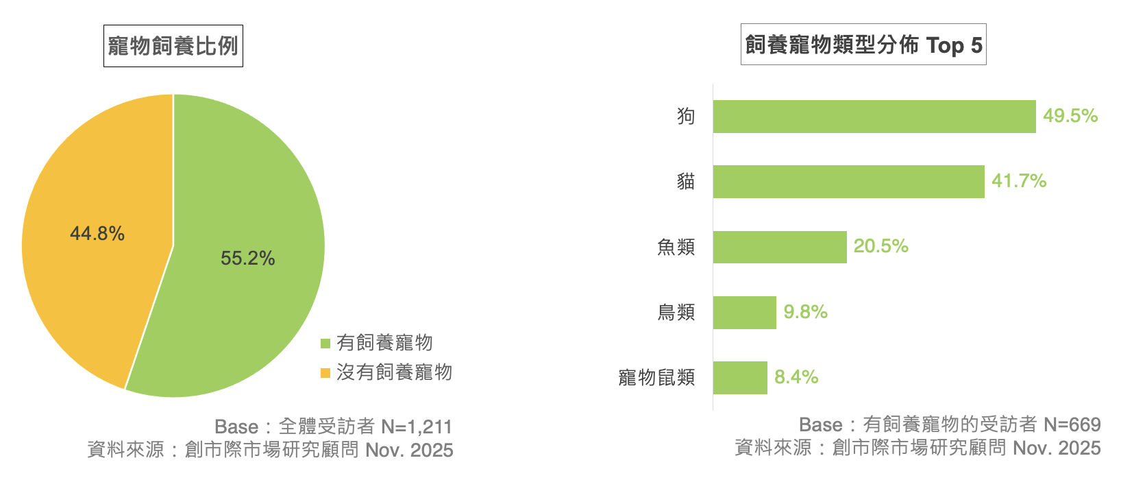 「毛經濟」的崛起,讓「吸貓嚕狗」的風潮越顯普遍,為了解毛孩們所掀起的市場脈動與飼主消費決策情形,創市際於 2025 年 11 月 18 日至 26 日,針對 15-64 歲以上的網友進行了一項「寵物篇」的調查,總計回收了 1,211 份問卷。